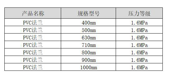 大口径高压力法兰是通过新型的“挤注压”工艺生产的一种新型PVC管件产品。解决了传统PVC管件在管道应用中的口径偏小压力等级不足的问题。该产品采用橡胶密封圈柔性连接,能够适用于大口径PVC管道工程中1.6MPa压力等级的配套连接。大口径高压力法兰是通过新型的“挤注压”工艺生产的一种新型PVC管件产品。解决了传统PVC管件在管道应用中的口径偏小压力等级不足的问题。该产品采用橡胶密封圈柔性连接,能够适用于大口径PVC管道工程中1.6MPa压力等级的配套连接。